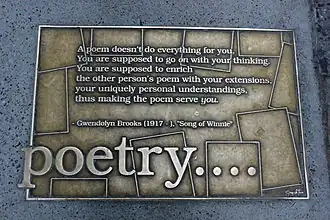 - ^ "Statue Of Poet Gwendolyn Brooks To Be Unveiled On Her Birthday « CBS Chicago". Chicago.cbslocal.com. June 7, 2018. Archived from the original on June 14, 2018. Retrieved June 14, 2018.