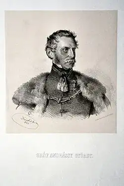 Count György Andrássy de Csíkszentkirály et Krasznahorka (February 5, 1797 – December 19, 1872) was a Hungarian nobleman, Imperial and Royal Chamberlain, Privy Councillor, Master of Cup-bearers, Chairman of the Tisza Rail Track Corporation and Upper Hungary Mining Association. He served as judge royal from 1863 to 1865.