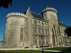 The château and surrounding lands were returned to the French Crown in 1308,[3] and were then granted to Louis I, Duke of Orléans in 1394, before passing to John, Count of Angoulême in 1407 and to Charles, Count of Angoulême in 1467.[4] Charles was a son of Charles V of France and, as such a member of the ruling Valois family. The complex was extended by the addition of a round tower, known as the Tour des Valois (Valois tower), which was commissioned by Charles, Count of Angoulême and erected at the southeast corner of the site in the late 15th century.[5] The future Queen of Navarre, Marguerite de Navarre, who was the eldest child of Charles, Count of Angoulême and Louise of Savoy was born in the Tour des Valois in 1492.[6]