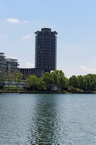 ![]() The Lac de Créteil, with the tower of the Hôtel de Ville in the background, in July 2013 | |