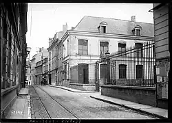 After the first town hall became dilapidated in the mid-18th century, the council moved to a building on the east side of Rue Bégard (also known as Rue Bigard, and later known as Rue de la Mairie) in 1778. This building, which served as the town hall for a century and a half, was laid out as a typical hôtel particulier with a grand entrance, a grand courtyard and three façades. The three facades, facing north, east and south were fenestrated with segmental headed casement windows and, above the two middle bays on the east facade, there was an ornate pediment containing a medallion, carved with the town coat of arms, flanked by scrolls and supported by a festoon. Internally, the building contained a fine assembly room, and politicians who attended meetings in the town hall included Sadi Carnot, Charles Daniel-Vincent, Jean-Baptiste Lebas, Léo Lagrange and Roger Salengro.[3]