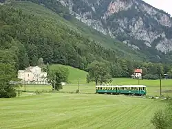 The Lower Austrian Höllental Railway (German: Höllentalbahn) is a narrow gauge electric railway with a track gauge of 760 mm (2 ft 5+15⁄16 in), which runs from the Austrian Federal Railways (ÖBB) station of Payerbach Reichenau on the Semmering Railway for approximately five kilometres (3 mi) through the market town of Reichenau an der Rax to Hirschwang.