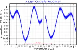 | HL Cancri, AG+10°1163, BD+11°1961, Gaia DR3 603701328976020864, HD 77191, HIP 44303, SAO 98298, PPM 126017, TIC 323492976, TYC 815-2116-1, GSC 00815-02116, 2MASS J09012277+1043585[9] | |