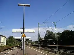 Haan-Gruiten station (Gruiten until 9 December 2017) is one of the two stations of the Bergian city of Haan in the German state of North Rhine-Westphalia. It is described in German as a Berührungsbahnhof (contact station), as the Düsseldorf–Elberfeld and the Gruiten–Köln-Deutz lines both pass through the station, but their operations are separate. East of the station, they join to form a common route at Linden junction, which is the actual beginning of the Gruiten–Köln-Deutz line. West of the platforms the lines separate to run to the west and the south.