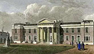 Following a bequest of approximately £20,000 made by the merchant Robert Aske to the Worshipful Company of Haberdashers on his death in 1689, an almshouse for twenty needy members of the Haberdashers' Company was established in 1690 just outside the City of London at Hoxton.[4] Designed by Robert Hooke, the almshouse comprised a chapel and, at its centre, the school, which provided education for 20 sons of poor freemen between the ages of nine and fifteen. However, the chaplain, Thomas Wright, was then made master of Bunhill School and was thus unable to teach the boys at Aske's. In 1697, therefore, John Pridie was appointed to teach the boys English, the catechism, and basic grammar at a salary of £40 a month. Soon afterward, Pridie secured the right to admit pupils from paying parents, allowing him to increase the amount of money spent on the boys' education. However, this right did not last for long.[5]