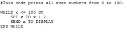 An example of the Haggis programming language which prints all even numbers between 0 and 100.