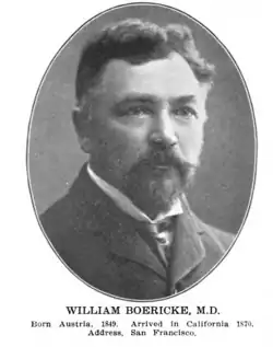- ^ a b c d e f g h i j k l m n o p q r s t u v w x y z aa ab ac ad ae Ward, James William (1905). "VI - Hahnemann Medical College of the Pacific.". In King, William Harvey (ed.). History of Homoeopathy and Its Institutions in America: Their Founders, Benefactors, Faculties, Officers, Hospitals, Alumni, Etc., with a Record of Achievement of Its Representatives in the World of Medicine. Lewis Publishing Company. pp. 214–39. Retrieved 27 August 2023.