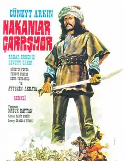 Hakanlar Çarpışıyor (Khans Are Fighting) is a Turkish historic action film by Natuk Baytan. It was released in 1977, during the most popular days of the Turkish historic films. The film is about the life of a Turkic warrior named Olcayto, portrayed by Cüneyt Arkın, who is the son of a Kyrgyz chief in Central Asia. When he was a small boy, Chinese troops attack their tribe and kill Olcayto's father. After this event, he decides to take revenge from Chinese warlords. Later, he would find a chance to do so when Chinese form an alliance with a Sheikh from South Asia, who uses all his efforts to kill Olcayto because of the love affair between his daughter and Olcayto.