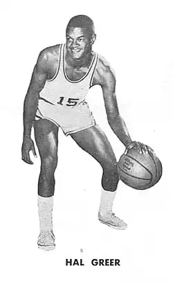 Harold Everett Greer (/ˈhæl ˈɡrɪər/ HAL GREER; June 26, 1936 – April 14, 2018) was an American professional basketball player and coach. He played for the Syracuse Nationals / Philadelphia 76ers of the National Basketball Association (NBA) from 1958 through 1973. A guard, Greer was a 10-time NBA All-Star and was named to the All-NBA Second Team seven times. He was named to the 50 Greatest Players in NBA History, the NBA 75th Anniversary Team, and his uniform number was among Philadelphia 76ers retired numbers. Greer is a member of the Basketball Hall of Fame.