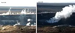 Another explosive event occurred during the night of April 9, 2008, which widened the Overlook Crater by an additional 5–10 meters (16–33 feet), ejected debris over some 60 m (200 ft) and further damaged the overlook as well as scientific monitoring instruments.[19]