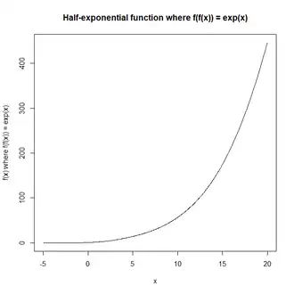 In mathematics, a half-exponential function is a functional square root of an exponential function. That is, a function such that composed with itself results in an exponential function:[1][2] for some constants and .
