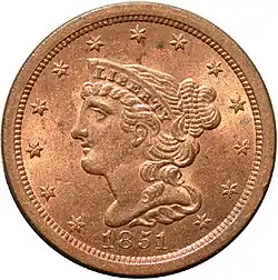 The Coinage Act of February 21, 1857 discontinued the half-cent and the similar large cent, and authorized the small cent (Flying Eagle cent).[5]