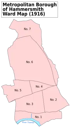 1918–1950: The Metropolitan Borough of Hammersmith wards numbers one, two and three.