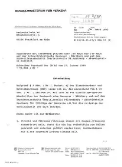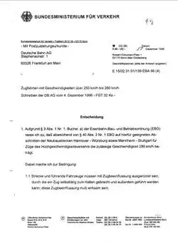 - ^ a b "Antwort der Bundesregierung auf eine kleine Anfrage (…): Einsparungsmöglichkeiten durch neuartige Trassierung von Schienenwegen für den Hochgeschwindigkeitsverkehr unter Berücksichtigung der Neigezugtechnik" (PDF) (in German) (Printed matter 13/2130). Deutscher Bundestag. 10 August 1995. Retrieved 30 August 2023.