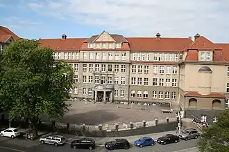 Hans-Dietrich-Genscher-Gymnasium Halle is a secondary school (gymnasium) in Germany. It was established in November 1908.[2] Currently, about 600 children attend the school.[3] The school is situated right in the city center of Halle an der Saale and is widely known for its two educational profiles: German secondary school and bilingual English-German profile.[4] In 2009 the school celebrated its 100th anniversary.[5] The school is named after Hans-Dietrich Genscher, a German politician.
