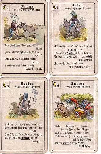 ![]() Two cards from an 1880s edition of Jaques' Happy Families | |