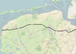 The Harlingen–Nieuweschans railway is a railway line in the Netherlands running from the port of Harlingen to Bad Nieuweschans, passing through Leeuwarden and Groningen. The line was opened between 1863 and 1868. It is also known as the Staatslijn "B". At Bad Nieuweschans, a connection with the German railway network is provided through the Ihrhove–Nieuweschans railway.
