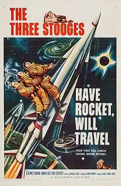 Have Rocket, Will Travel is a 1959 American science-fiction comedy film released by Columbia Pictures and starring the Three Stooges, consisting of Moe Howard, Larry Fine and new addition Joe DeRita ("Curly Joe"). The film was produced to capitalize on the Three Stooges' late-1950s resurgence in popularity. The supporting cast features Anna-Lisa and Robert Colbert.