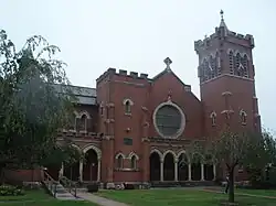- Central Presbyterian Church, 64 New Main Street at intersection with Hudson Avenue, was founded in 1846 and moved to its present church in 1909, which was built with donated Haverstraw brick and now-scarce American Chestnut wood. The 13 stained-glass windows in the main sanctuary were designed by Louis Comfort Tiffany.