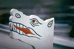 The dragon head is the symbol of the boats of Havnar Róðrarfelag, the stem of the boats is shaped as a dragon head.