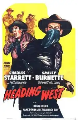 Heading West is a 1946 American Western film directed by Ray Nazarro and written by Ed Earl Repp. The film stars Charles Starrett, Doris Houck, Hank Penny and Smiley Burnette. The film was released on August 15, 1946, by Columbia Pictures.[1][2][3] This was the fifteenth of 65 films in the Durango Kid series.[4]