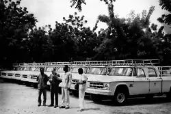 Trucks being donated to Upper Volta in 1969 as part of the global smallpox eradication campaign.