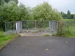 The brook is fenced off for safety reasons; after rainfall, water levels can rise considerably in a very short time as the water drains from surrounding areas.[2]