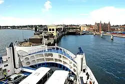 In 1991, a new terminal building for the Helsingør ferry terminal was inaugurated adjacent to the old station building from 1891.[13] The ferry terminal is decorated by the Danish artist Bjørn Nørgaard.