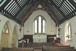 Hempton has a former nonconformist chapel that is said to have been opened in 1840.[1] It ceased to be used for worship in the 1950s and is now a private house. The Church of England parish church of St. John the Evangelist was completed in 1850[2] or 1851.[1][3] Rev. William Wilson of Over Worton designed the Gothic Revival building[2][3] and funded its construction.[1] The building has Early English style lancet windows and a two-bay north arcade that led to a schoolroom.[2] The church's font is a Norman one from Holy Trinity parish church, Over Worton.[1][2][3] In its early decades St. John's was a licensed but unconsecrated chapel and independent of the Benefice of Deddington,[1] but is now part of the benefice.