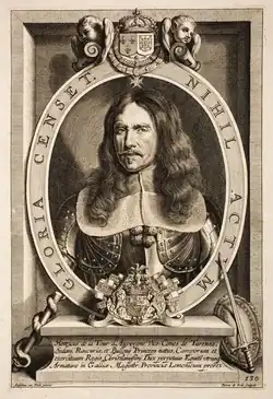 Henri de La Tour d'Auvergne, vicomte de Turenne (11 September 1611 – 27 July 1675), commonly known as Turenne (French: [tyʁɛn]), was a French general and one of only six marshals to have been promoted Marshal General of France. The most illustrious member of the La Tour d'Auvergne family, his military exploits over his five-decade career earned him a reputation as one of the greatest military commanders in history.