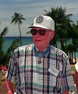 In addition to the Medal of Honor and two Air Medals received earlier in 1945, he was also awarded the Purple Heart, the World War II Victory Medal, the American Campaign Medal, three Good Conduct Medals, the Asiatic-Pacific Campaign Medal with two bronze campaign stars (for participation in the Air Offensive Japan and Western Pacific campaigns), and the Distinguished Unit Citation Emblem.[2]