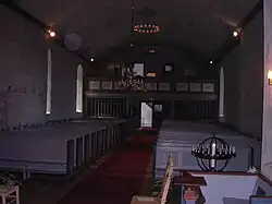 The earliest existing historical records of the church date back to the year 1432, but the church was originally constructed during the second half of the 1100s. The church has a rectangular nave, a tower to the west, and a narrower choir with a semicircular apse. The choir and apse have a lower roof line than the nave. Research on the building has shown that the choir part is the oldest part of the existing building with the apse and nave built a little later. Originally, the current choir was the stone nave that was attached to a wooden building. The wood building was later torn down and the stone building was expanded. Over the years, the church fell into disrepair. During the early 1400s, the western wall of the church was taken down and the stone nave was shortened by about 4 metres (13 ft) and then a new wall was built. In 1879, the church was enlarged by doubling the length the nave (adding about 10 metres (33 ft) to the nave) and then a new west tower was added on the end of the new nave. In the 1960s, the church was thoroughly renovated by the architect John Egil Tverdahl.[3][4]