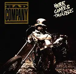 Here Comes Trouble is the 10th studio album by the English hard rock band Bad Company, it would be the last studio album with Brian Howe as lead vocalist. The album was released in September 1992. The cover is an image by Mark Vincent of his young brother in front of a chopper. The title track received some airplay on classic rock radio, although "How About That" was the biggest single from the album, spending six weeks at the top of the Album Rock Tracks chart in the US.