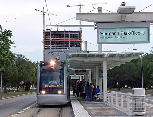 Hermann Park/Rice U is a light rail station in south-central Houston, Texas, United States. The station serves the Red Line of the METRORail system. It is located on the western side of Hermann Park at the intersection of Fannin Street and Sunset Boulevard.
