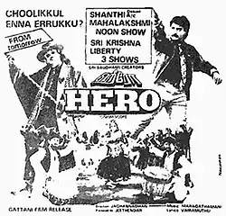 Hero is a 1994 Indian Tamil-language action thriller film directed by A. Jagannathan.[1] It is a remake of the 1993 Hindi film Khal Nayak.[2] The film stars Vinod Kumar Alva, Rahman and Sukanya. It was released on 16 September 1994.