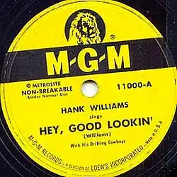 "Hey, Good Lookin'" is a 1951 song written and recorded by Hank Williams, and his version was inducted into the Grammy Hall of Fame in 2001.[4] In 2003, CMT voted the Hank Williams version number 19 on CMT's 100 Greatest Songs of Country Music. Since its original 1951 recording, it has been covered by a variety of artists.