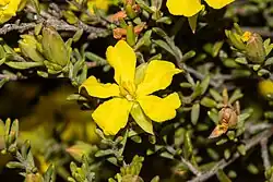 This hibbertia grows in dry scrub or open mallee woodland in central western Victoria and south-eastern South Australia.[2][3]