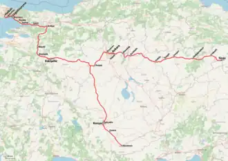 45. ^ "Halkalı-Kapıkule Hızlı Tren Projesi'nin ilk etabı 2025'te tamamlanacak". www.aa.com.tr. Retrieved 31 March 2024.