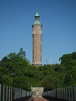 The High Bridge system reached its full capacity by 1875.[30] With the opening of the New Croton Aqueduct in 1890, the High Bridge system became less relied upon; during World War I, it was completely shut down when sabotage was feared.[30] In 1949, the tower was removed from service,[28][30] and a carillon, donated by the Altman Foundation, was installed in 1958.[30]