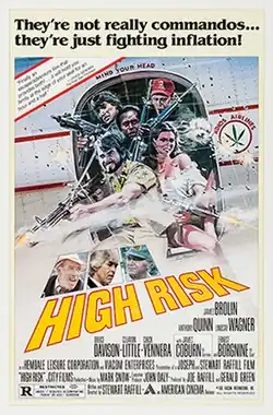 High Risk is a 1981 American-British-Mexican adventure heist film directed by Stewart Raffill and stars James Brolin, Lindsay Wagner, Cleavon Little, James Coburn, Ernest Borgnine and Anthony Quinn.[2]