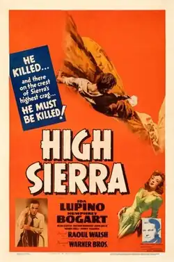 High Sierra is a 1941 American film noir directed by Raoul Walsh, written by William R. Burnett and John Huston from the novel by Burnett, and starring Ida Lupino and Humphrey Bogart. Its plot follows a career criminal who becomes involved in a jewel heist in a resort town in California's Sierra Nevada, along with a young former taxi dancer (Lupino).