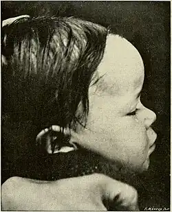 | High anterior hairline with frontal bossing in congenital syphilis | |