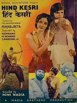 Hind Kesari (Hindi: हिंद केसरी, Caesar of India) is a 1935 Hindi action adventure film directed by Homi Wadia, and starring Husn Banu, Sardar Mansoor, Gulshan, Jal Khambatta, Tarapore and Master Mohammed.[1][2] The film was a remake of the 1932 film of the same name, directed by Homi Master for Jayant Pictures. The film did well for a "stunt film" breaking "records" at the box office.[3]