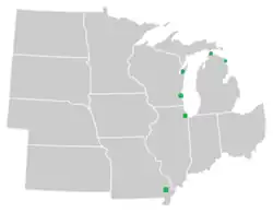 The Hine's emerald's current range includes parts of the United States and Canada. Within the United States, the Hine's emerald's range includes Illinois, Michigan, Missouri and Wisconsin.[13] Within Canada, the Hine's emerald's range includes parts of Ontario.[9] The Hine's emerald historically also occupied parts of Ohio, Indiana, and Alabama. Due to habitat modification, the Hine's emerald likely no longer live in these states. Whether the Hine's emerald once lived in parts of other states is currently unknown.[9]