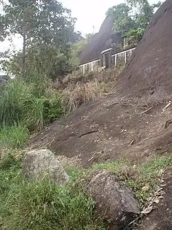 The rock, housing the cave, is actually called Thri-kal-kudi Paara. (Thri/Thiru= Divine, Kal=Stone/Rock, Kudi=home/settlement, Paara=Rock/Boulder. Mal. തൃക്കല്ക്കുടി ). Literally, this means cave settlement. The land surrounding the rock also was called 'Kal-kudi' (കല്ക്കുടി). Still, there is a nearby piece of land by name 'Kakkudiyil', a corrupt form for 'Kalkudiyil' (കല്ക്കുടിയില് ). More corrupt forms (like Thrikkaakkudi, Thrikkokudi etc.) are doing rounds as newer generations of people, defying rhyme and reason, use words, ignoring their etymological significance.[3]