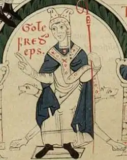 Another hypothesis links the name "Goffredo" to the Count and Bishop of Brescia,[28] Goffredo of Canossa (10th century), great uncle of Countess Matilda,[29] who had extensive possessions in the area,[30] and who wanted to found Castrum Guffredi to defend his possessions;[31] or to a Goffredo confaloniere (or Goffredo Confalonieri)[32] of Medole, who was granted lands in Castel Goffredo by the Bishop of Mantua, Pellizzario, on July 8, 1230.[33]