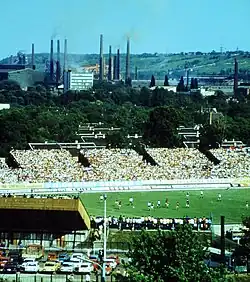 In the 1978–79 season of the Hungarian League the club reached its best result ever finishing on the third position of the table, ending the season with 19 wins, 8 points off champions Újpest. This was achieved despite only getting one win after their first 5 games. The team then went on a 7-week, and then 9-week unbeaten streaks at different points of the season. The first streak was broken by Békéscsaba, after a 5-0 hammering of Diósgyőr in December 1978. Remarkably, all five goals were scored by Sándor Vágási. In November 1978, DVTK defeated Ferencváros 1–0 in front of 25,000 people. This was DVTK's second consecutive victory over Ferencváros in the league, for the first time since 1959. The club also managed to hold Ferencváros to a 1–1 draw in the spring part of the season, thanks to an '82 minute equalizer from Tatár. DVTK would avenge the humiliating loss in Békéscsaba earlier in the season, defeating the eastern purples 5–0 in Miskolc. László Fekete scored a hat-trick. Due to the club's league position, they qualified for the 1979-80 UEFA Cup.[6] On 19 September 1979 Diósgyőr was hosted by SK Rapid Wien at the Gerhard Hanappi Stadium and the match was won by the Hungarian club by 1–0.[7] On 3 October 1979 the second leg was also won by the Hungarian club by 3–2.[8] On 24 October 1979, Diósgyőr was hosted by the Scottish club, Dundee United F.C. at the Tannadice Park. The match was won by Diósgyőr.[9] The second leg was won by Diósgyőr by 3–1 at home, therefore the Hungarian team could qualify for the third round of the cup.[10] on 28 November 1979, in the third round Diósgyőr faced with the giant German club 1. FC Kaiserslautern and they lost 2–0 at home which resulted a very difficult return match for the Miskolc team.[11] On 12 December 1979 Kaiserslautern beat Diósgyőr 6–1 which resulted the farewell for the team since the German club advanced on 8–1 aggregate.[12]