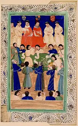 Feudalism had not always been a part of English society, rather than being positively imposed by the monarchs prior to the Norman Invasion.[6] However, from 1348 everything changed as the Black Death swept through Europe, killing a third of the population. People like the poet Geoffrey Chaucer had seen subservience as part of a natural social order, ordained by God.[7] But if landowners had themselves survived the plague, the peasants' labour on the land had become very scarce. Ironically, the surviving peasants were in a greater position of economic power, in claims or bargaining for wages. Feudalism began to break down.[8] First, serfs could undergo "commutation", where the lord simply agreed to accept money rents from tenants instead of labour services. This did not mean freedom itself, but abandoning forced labour and payments in kind to landlords meant the open evidence of servility was concealed. In disputes, royal courts were increasingly biased toward declaring a peasant was free. Second, through an act of manumission lords could voluntarily grant freedom and this was increasingly done, after the plague, if the serf or a relative made a payment of money. Third, the common law stated that if a serf lived on free soil, as in a chartered town or Royal demesne land, for a year and a day, they would become free.[9] The nobility and the King reacted to the rising bargaining power of the peasantry by fixing wages,[10] and violently suppressing any uprisings, like the Peasants' Revolt in 1381.[11] Yet this combination of factors, slowly but surely, meant that by 1485 just one per cent of the population were left in bondage.[12] Formal subservience was increasingly seen as a social scar. In 1523 Justice Anthony Fitzherbert wrote that the remainder of bondmen was "the greatest inconvenience that now is suffred by the lawe".[13]
