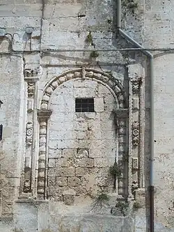 Of the Roman age, on the other hand, remain basalt paving stones of the Appian Way[4] and a rustic villa discovered in Contrada San Lorenzo, along the banks of the Canale Reale, having an area of about 290 square meters and datable between the first century B.C. and the middle of the second century A.D. The lack of plasterwork, mosaic floors and other finishing touches led to the assumption that the villa in question had not been used as a dwelling, but, indeed, as a rustic villa, forming the epicenter of a fundus.[5] From the numerous archaeological finds from the Roman and Messapic periods, it has been assumed that a large city, razed to the ground in 845 by the Saracens, stretched near the Santa Cecilia and Guardiola districts in ancient times.[6]