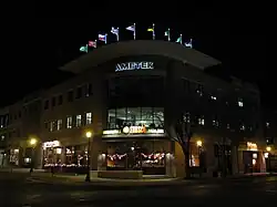 Beginning in 2008, several redevelopment projects in the downtown area, some of which had been discussed for decades, were put into motion and resulted in nearly $110 million in total investment from public and private sources. The first of these was the Phoenix Project, a development privately financed by Kent resident Ron Burbick that renovated and expanded a section of commercial space along East Main Street.[46] Included in the project was construction of a pedestrian alleyway lined with small shops, eventually known as Acorn Alley, which opened in 2009. A second phase of Acorn Alley opened the next year. Other aspects of the redevelopment, which includes a 360-space parking deck and bus transfer station, a hotel and conference center, and three separate mixed-use buildings, began to take shape in 2010 following the demolition of several buildings in a four block area. New offices for Ametek and the Davey Tree Expert Company opened in late 2012 along with several new small businesses on the first floors of each building.[47] The hotel, operated by Kent State University, is scheduled to open in June 2013 and the new parking garage, operated by the Portage Area Regional Transportation Authority (PARTA) opened April 30, 2013.[48][49] Included in the redevelopment was the purchase and renovation of the old Kent hotel, which first opened in 1920. After being mostly vacant since 1979 and completely vacant since 2000, it re-opened on April 1, 2013 as the new home to the Kent location of Buffalo Wild Wings and will also house offices, a wine and jazz bar, and apartments.[50] Construction started in early 2013 on an additional five-story apartment building in the adjacent block that was scheduled to be completed in 2014.[51] The developments attracted the attention of The Plain Dealer and The New York Times and earned the city and university the 2013 Larry Abernathy Award from the International Town–Gown Association in recognition of the positive town–gown cooperation and collaboration.[52][53][54]
